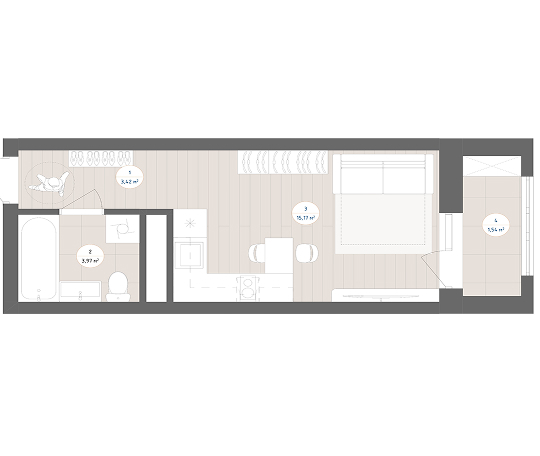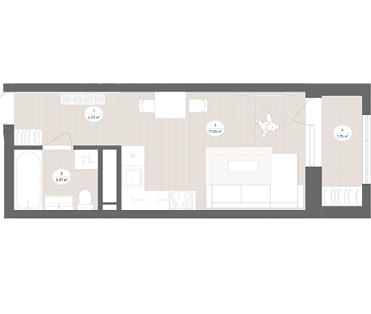 Студия в ЖК «Атом» — это идеальный старт для тех, кто ценит независимость и современный комфорт. Мы продумали планировку так, чтобы на 29–30 м² вы чувствовали абсолютную свободу.