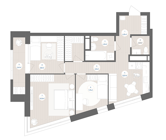 Большая лоджия наполняет квартиру естественным светом и может стать вашим личным кабинетом или лаунж-зоной